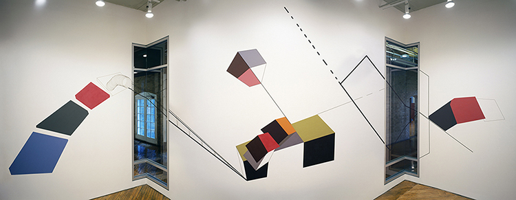 Conundrum | installation view of wall work | Wynic/Tuck Gallery, Toronto| gouache, graphic tape on wall | 2005 | photo credit: Peter MacCallum