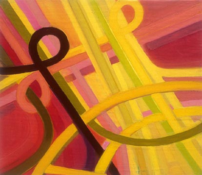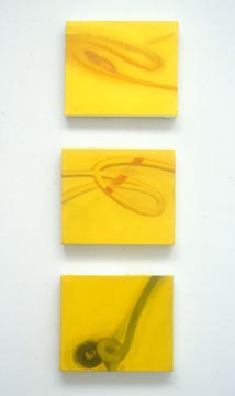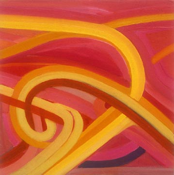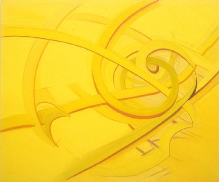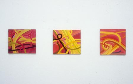 While living in France or a period of four months, the organic circularity of Paris boulevards inspired painted webs of intertwined and luminous loops suspended in the pictorial space. Road diagrams of highways are re-arranged, crisscrossed and overlapped to create swirling painted abstract patterns suggestive of aerial views of some unknown site.