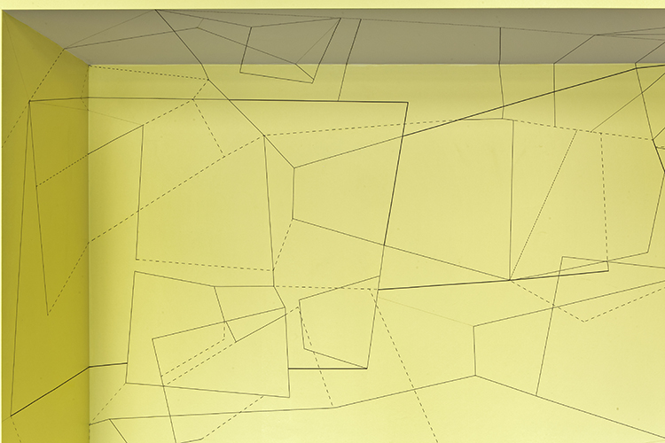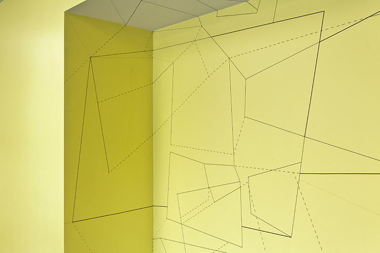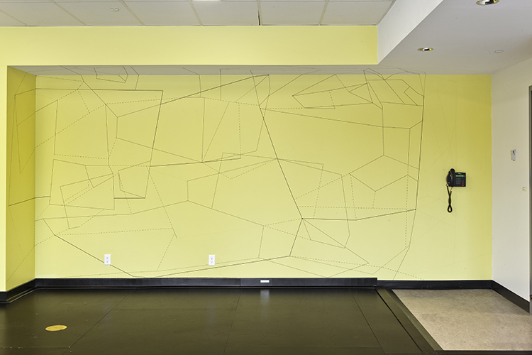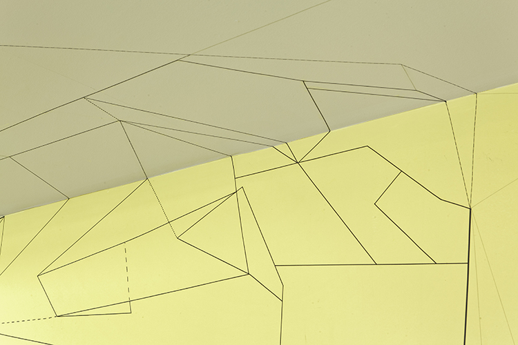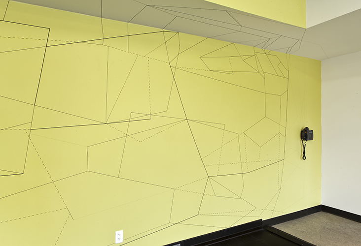Legacy |detail of upper right corner | graphic tape on wall | curator: Scott Watson | May 18 -June 19, 2012 | Photo Credit: Toni Hafkenscheid