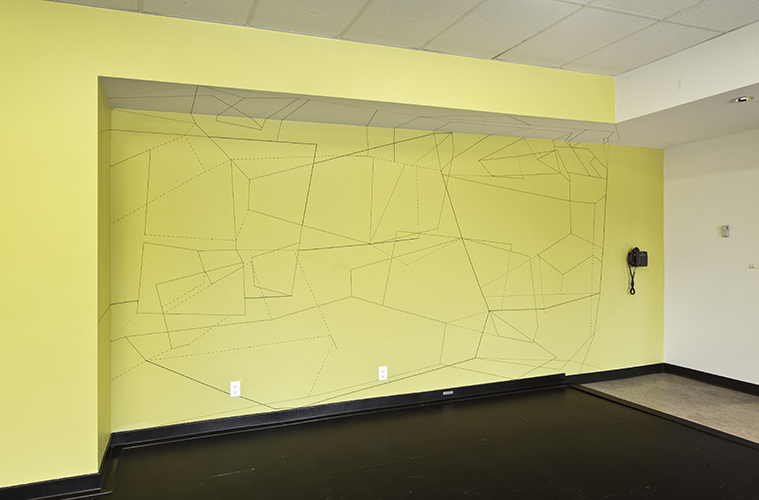 Legacy | left side view | graphic tape on wall | curator: Scott Watson | May 18 -June 19, 2012 | Photo Credit: Toni Hafkenscheid