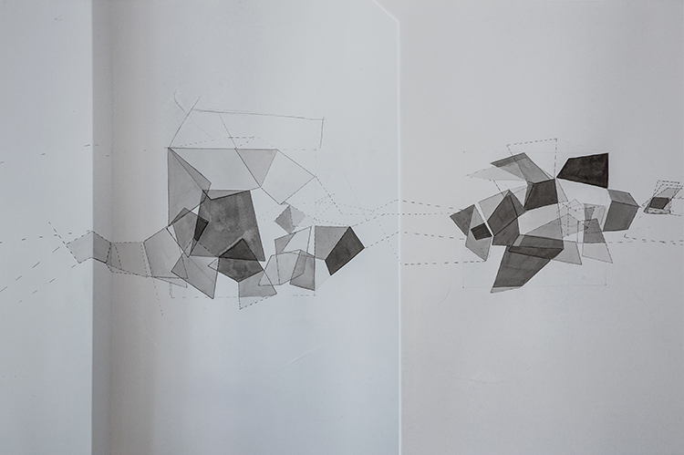 Periphrase | ink and gouache on digital photo printed on Somerset Vellum archival paper | 73.6 x 101.6 cm | 2016 | Photo credit: Tony Hafkenscheid